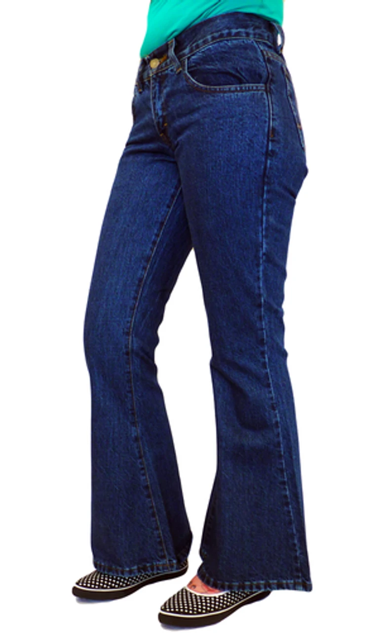 BLAST FLARES’ – RETRO SIXTIES/SEVENTIES DENIM FLARES BY MADCAP ENGLAND – Madcap England Cotton Denim Flares in Blue. 5 pocket design. Button waist with zip fly. Low rise hipster waist. 26″ flared bottoms.