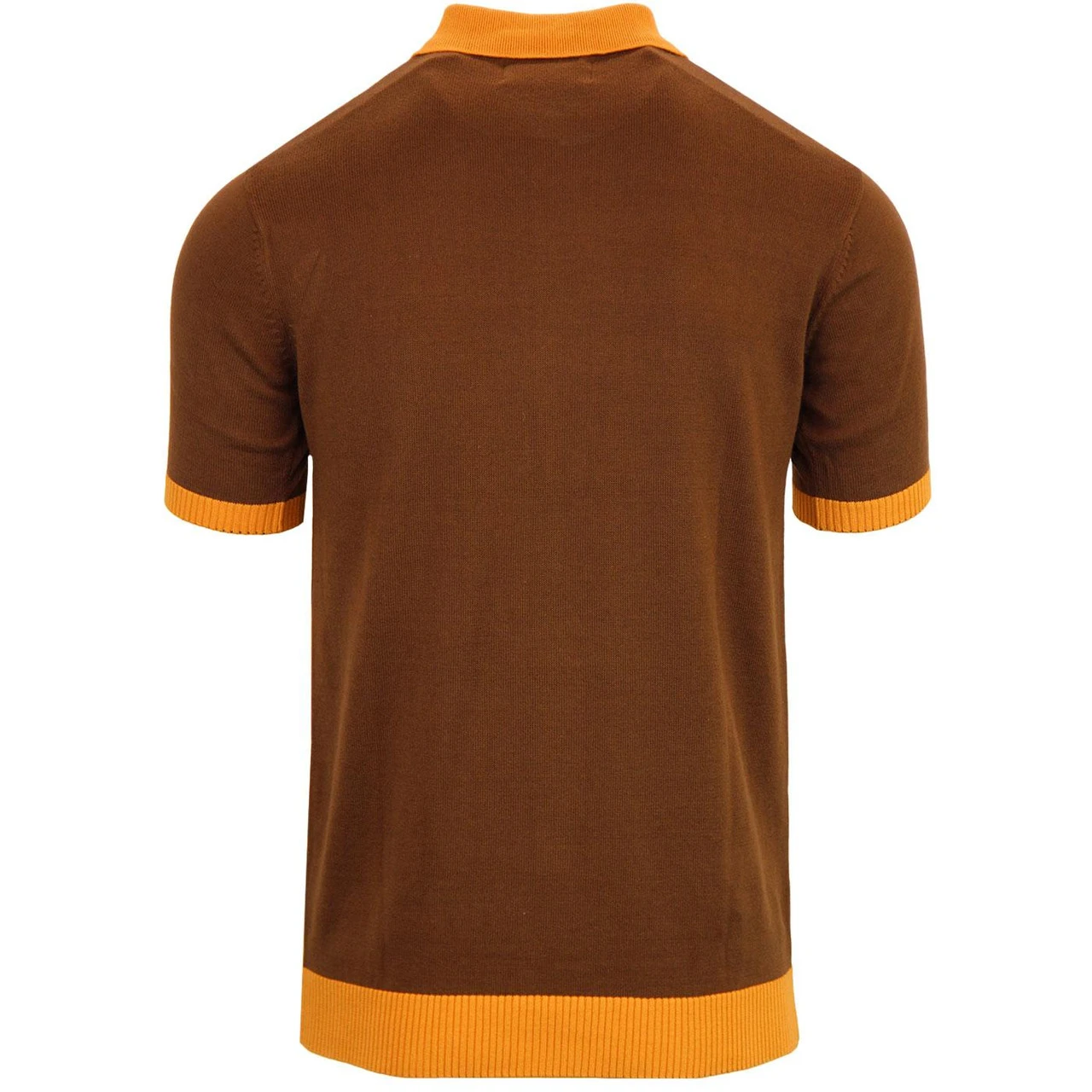 – Madcap England ‘Hendrix’ men’s 1960s mod tile knit zip polo cardigan.