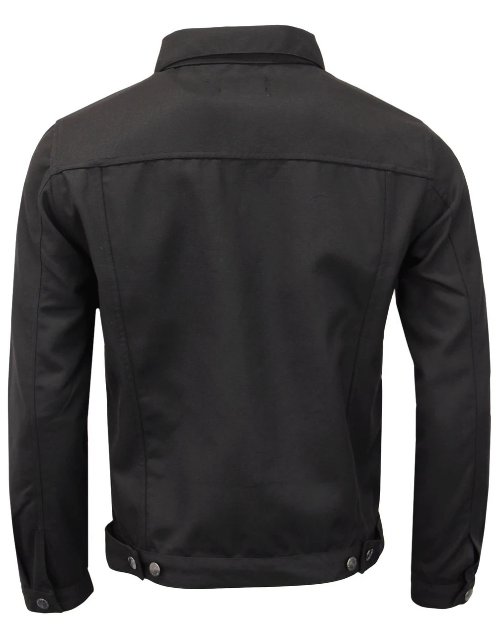 – Madcap England ‘Hoxton’ men’s 60s mod hopsack trucker jacket in black.