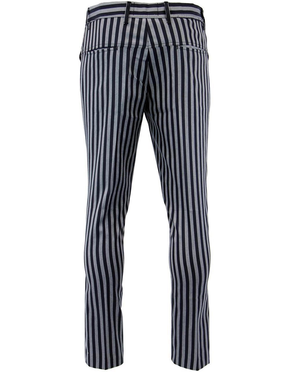 Key Points: Madcap England ‘Meadon’ boating stripe slim leg trousers with frogmouth pockets.