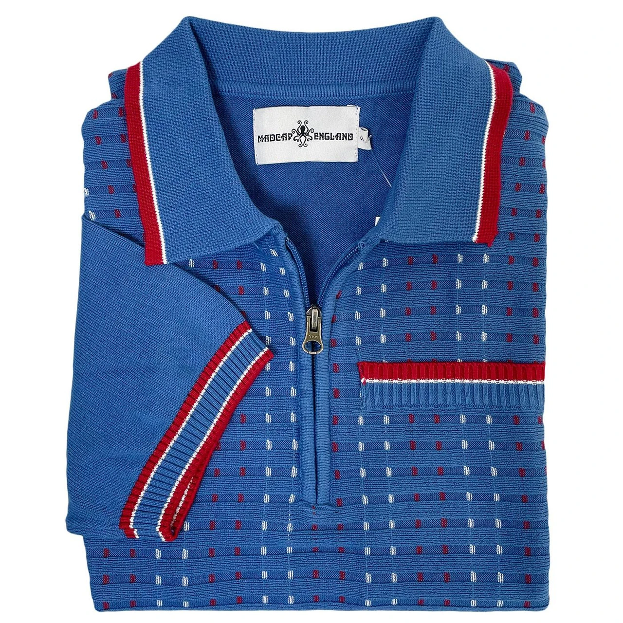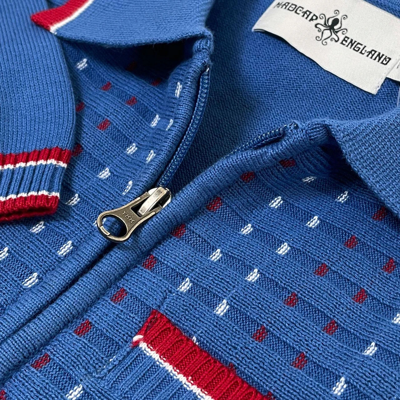 - Madcap England Miles Mod Jacquard Knitted Polo Shirt in federal blue.